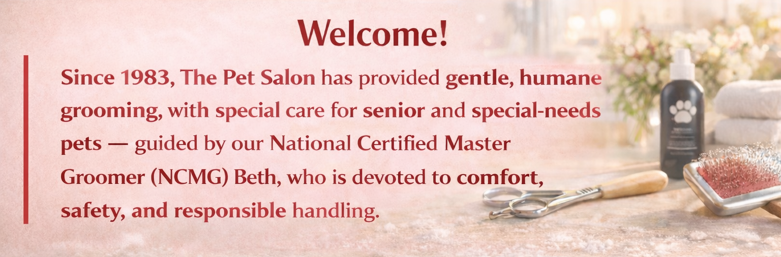 The Pet Salon has been dedicated to the health and well being of your pet since 1983. We provide special, gentle care to aging dogs and cats, and those requiring special treatment. You can feel secure knowing that your pet is in a responsible, loving, gentle environment.